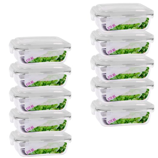 Kit 10 Pote Vidro Tampa Silicone Hermetica Retangular 370ml